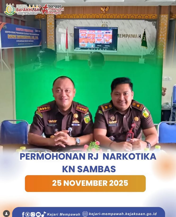 Kepala Kejaksaan Negeri Mempawah, Bapak Dr. Samsuri, S.H., M.H., bersama Kepala Seksi Pidana Umum, Bapak Muhammad, S.H., M.H., menghadiri kegiatan permohonan Retrospective Justice terkait perkara Narkotika yang diajukan oleh KN Sambas di Aula Kejaksaan Negeri Mempawah yang bertujuan untuk memastikan proses permohonan berjalan sesuai ketentuan hukum yang berlaku, sekaligus melakukan pemantauan serta evaluasi terhadap implementasi kebijakan Retrospective Justice di wilayah kerja Kejaksaan Tinggi Kalimantan Barat.